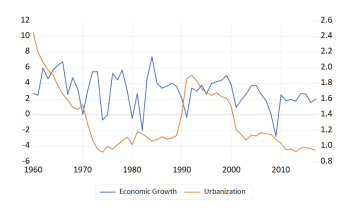 Figure 1. Economic Growth (Left Vertical Scale) and Urbanization (Right Vertical Scale)