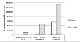 In the case of water consumption, the increase will not be linear with the additional population since the new development offers significant additional means for water usage. While many of the existing cessed properties have communal washing facilities, the new development offers each individual unit outlets for toilets, showers and washing facilities. Showers and washing machines. This results in not only an increase in the number of water-consuming appliances but also offers the opportunity of increased duration of use.