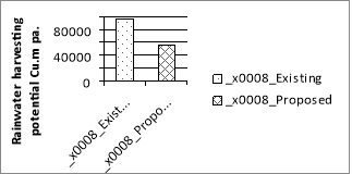 The reduction in site coverage and the taller, but fewer, buildings results in a decrease in overall roof area of 32% with the same decrease in rainwater harvesting potential (a mandatory requirement in Mumbai) resulting in less than half (45%) the potential amount of rainwater per person (Figure 7).