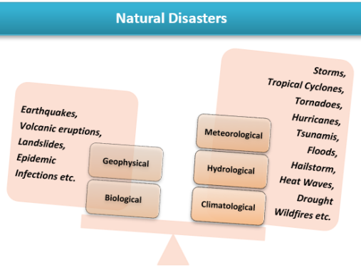 Human beings experience different types of natural disasters during their lifetimes. Some types of natural disasters strike certain locations because of seasonal and natural deeds. For example, in the Atlantic Basin from the beginning of June to the end of November, there is a high possibility of a tropical cyclone strike, which is called a hurricane. The most prone areas, therefore, are the Atlantic coast and the Gulf of the United States, and the islands of the Caribbean. The season of cyclones in the South Pacific and the Indian Ocean is between November and April. Tropical cyclones striking the Northwest Pacific Ocean are called Typhoon and threaten the islands of Japan and the Philippines. Differently, the west coast of the United States is prone to earthquakes and wildfires rather than hurricanes. Countries including Turkey, Iran, Greece, and Italy are known as earthquake-prone countries because of their geological seismic structures. India, Bangladesh, Indonesia, and Thailand are countries exposed to river floods very often due to heavy rainfalls and their low-lying lands. These examples are to frame the natural reasons for some hazard types. Accordingly, natural disasters can be categorized into five groups: geophysical, biological, meteorological, hydrological, and climatological (Figure 1). Some types of hazards turn into disasters for a small area and a short period, such as earthquakes and volcanic eruptions. Some of the hazards under the categories of meteorological, hydrological, and climatological affect larger areas and most of the time last for a long period varying from days to years. Consequently, natural disasters are categorized based on their speed of happening as well. Droughts, changes in the amount of rainfall and the rise of sea level are among the slow-onset disasters that “that does not emerge from a single, distinct event but one that emerges gradually over time, often based on a confluence of different events” (Adamo, 2011). Slow-onset disasters are considered likely to have resulted in population displacement and migration mobility due to environmental challenges. Hence, they have social and economic effects in the long run since the movement becomes either temporary (that is, seasonal) or permanent in the case of the environmental conditions that cannot be restored. Rapid-onset disasters, on the other hand, have an instant impact, although some allow for the early warning system. Earthquakes, for instance, cause severe destruction in the built environment in only a few seconds, and sometimes they trigger further disasters such as tsunamis, landslides, fires, and explosions (for example Fukushima Nuclear leakage in 2011). Nonetheless, they are considered rapid-onset disasters that require urgent intervention and preparation can simply improve the coping with strategies in most cases. Some geophysical disasters can cause hydrological disasters too. For example, a volcanic eruption emits a great amount of sulphur dioxide that the reaction in the atmosphere creates acid rains afterward (for example Kilauea eruption in 2018). However, not all geophysical disasters are bound to a hydrological, meteorological, or climatological disaster. The latter three can occur alone resulting from a serial formation of natural events. According to the EM-DAT Database in 2020 (Table 1), the total number of natural disasters reported around the world significantly increased between 1970 and 2019.