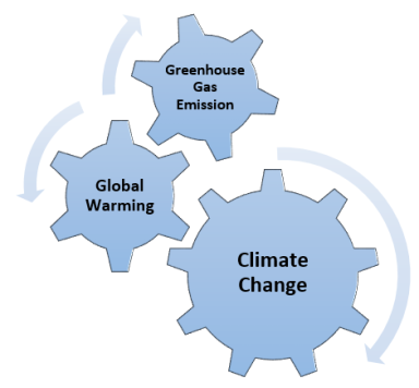 Figure 2. The interrelation between GHG emission, global warming, and climate change.