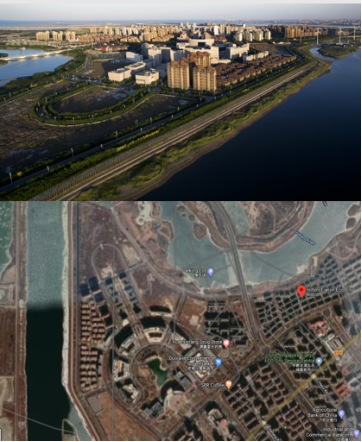 Since Tianjin a city facing water scarcity, the Tianjin Municipality Ecological City Development has adopted local codes and regulations to force water conservation, water-saving technologies in seawater desalination, wastewater treatment, water reuse, and flood and storm management (World Bank, 2009) While Tianjin eco-city was realised, the development of Dongtan eco-city was, on the other hand, was postponed until. ARUP was consequently hired in 2005 to design and construct the project. It was aimed to have 60% less ecological footprint, 60% less energy consumption and to emit almost no carbon dioxide while producing 40% of the total energy required. The City was planned to have three villages to host 500 thousand people. In Dongtan, all vehicles in transportation would run on batteries or hydrogen fuel cells. An alluvial island was chosen for the development which was home to the migratory water birds. For the residential blocks, low-rise buildings (four to eight stories) were preferred, unlike Tianjin. Chang (2017) argued that the lessons learned from the failed dream of the Dongtan eco-city gave birth to a rather successful example, Tianjin. However, Caprotti et al. (2015) criticized that the project of Tianjin was a design with high reference to countries of Singapore and Taipei, fashioning the eco-city and thus, to attract people from a wealthy background. Figure 5 illustrates the view of Tianjin from the riverside.