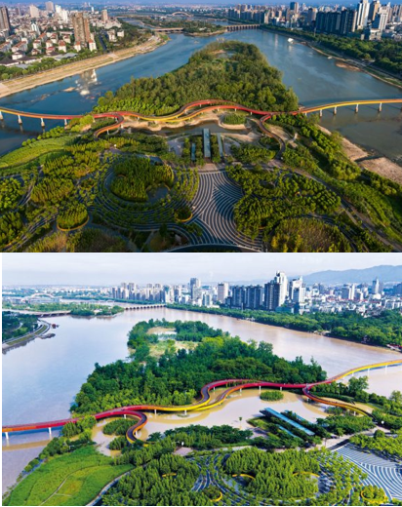To give another example, Yangtze Riverfront Park in Wuhan was completed in 2018. Wuhan had the worst rainfall events of its past 18 years from 2016. Since the river was the main reason for flooding, to achieve a resilient urban area, 7 km long Beach Park fully covered with vegetation was designed as a buffer zone between the buildings and the riverside. Because the river culture was very common in Wuhan, the Park created was designed as a promenade that the public would enjoy walking and skating.