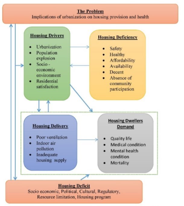 Housing has become an important issue in meeting the challenges presented by global urbanization. In developing nations, particularly in Africa, the need for housing has repeatedly emerged and become so critical. This is most pronounced with Africa’s population projected to reach over 700 million by 2030. African nations have over 4.5 percent yearly urbanization rate, which has resulted in a population explosion, resource constraint and shortage of houses. Consequently, in numerous African nations, access to safe, decent and affordable housing remains a challenge(Wong, 2014). Currently, 72% of the urban population in Africa resides in slums with risks of diseases and insecurity. To meet the challenges of housing demand arising from rapid urbanization, housing delivery should not be limited to quantity at the expense of quality in the provision of a healthy, safe, inexpensive, and satisfactory shelter.