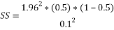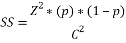 P= percentage picking a choice expressed as decimal (.5 used for sample size needed)