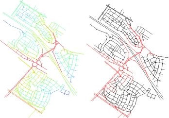 Figure 8. Integration maps, (Left) Project integration map; (Right) Lines 25% more integrated (Integration core)