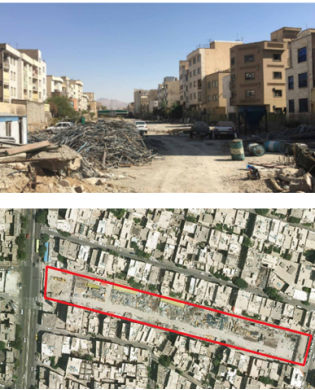 Shirin-Dokht intervention area covers 2700 square meters in the “Minabi neighborhood” in District 15 of Tehran. The area is the result of buying and merging 36 parcels in an obsolescent neighborhood by UROT in the previous decade which had been abandoned for many years (Figure 5). According to the interviews and surveys, residents classified their social problems into three groups: low levels of security, migration of primitive residents, and occurrence of disturbing activities within the residential neighborhood. They referred to the numerous indefensible spaces in the neighborhood as the basis for the presence of addicted persons and the main reason for unsafety. Also, the lack of sewage collection network, visual disorder and stench caused by garbage was a source of dissatisfaction among residents.
