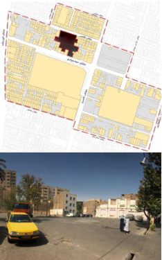 Figure 5. Shirin-Dokht local space, pre-intervention status (Down), intervention area site plan (Top).
