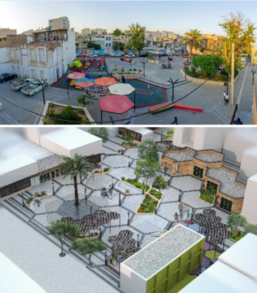 A field study of the problems in the intervention area indicated that the major issues were low levels of security (25%), lack of green spaces and inappropriate use of the space as a parking lot (27%); and environmental pollution (40%). Due to the poverty of the residents and inappropriate physical quality of the Anbar-Naft neighborhood, many primitive residents have left neighborhood, and current residents showed low levels of sense of belonging. These circumstances led to a lack of social integrity. In the status quo, the use of behavioral patterns in the space are related to the parameters of time and place; it means the least activity was observed before the afternoon, and after 4 pm, most behavioral patterns occurred in the form of a group sitting and children playing. In this small and micro-scale space, an attempt was made to make the best use of the space according to the needs of residents. For this reason, the intervention focused on re-organization of the space, improvement of the green spaces and creation of several places for neighbours to gather and children to play (Figure 4).