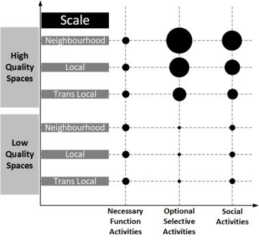 Figure 1. The impact of space quality on different activities (Gehl, 2011) .