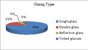 From the research study as indicated in the pie chart (Figure 6), it was observed that 75% of the glazed units in the Karakol district are single glazing; this drastically increases the energy consumption as energy escapes from the space during heating or cooling (Landsberg & Stewart 1980, p.31). This factor will increase the cost and monthly energy consumption of these buildings.